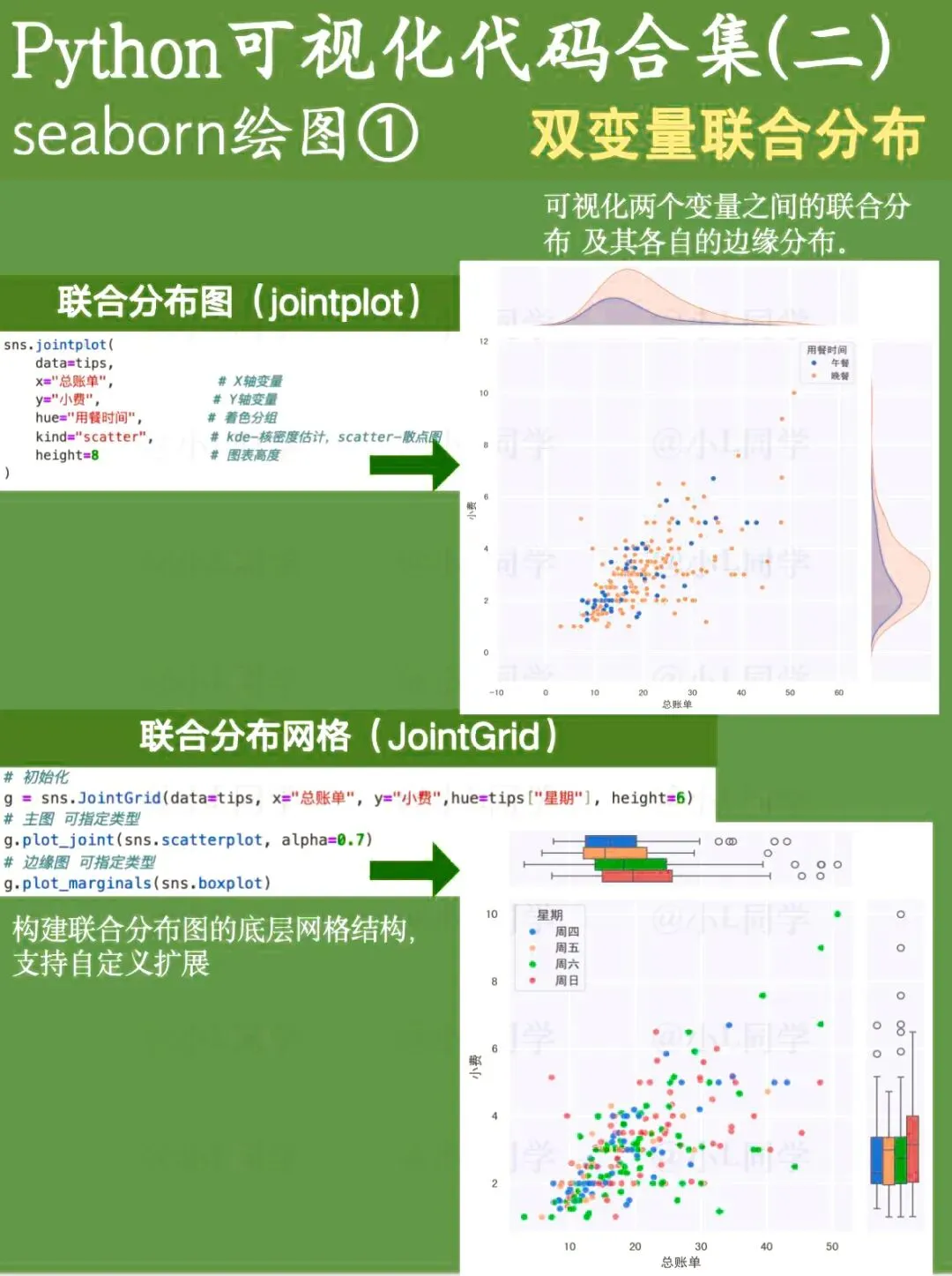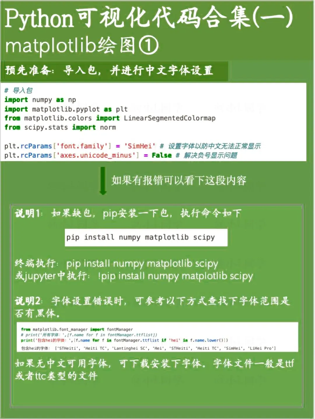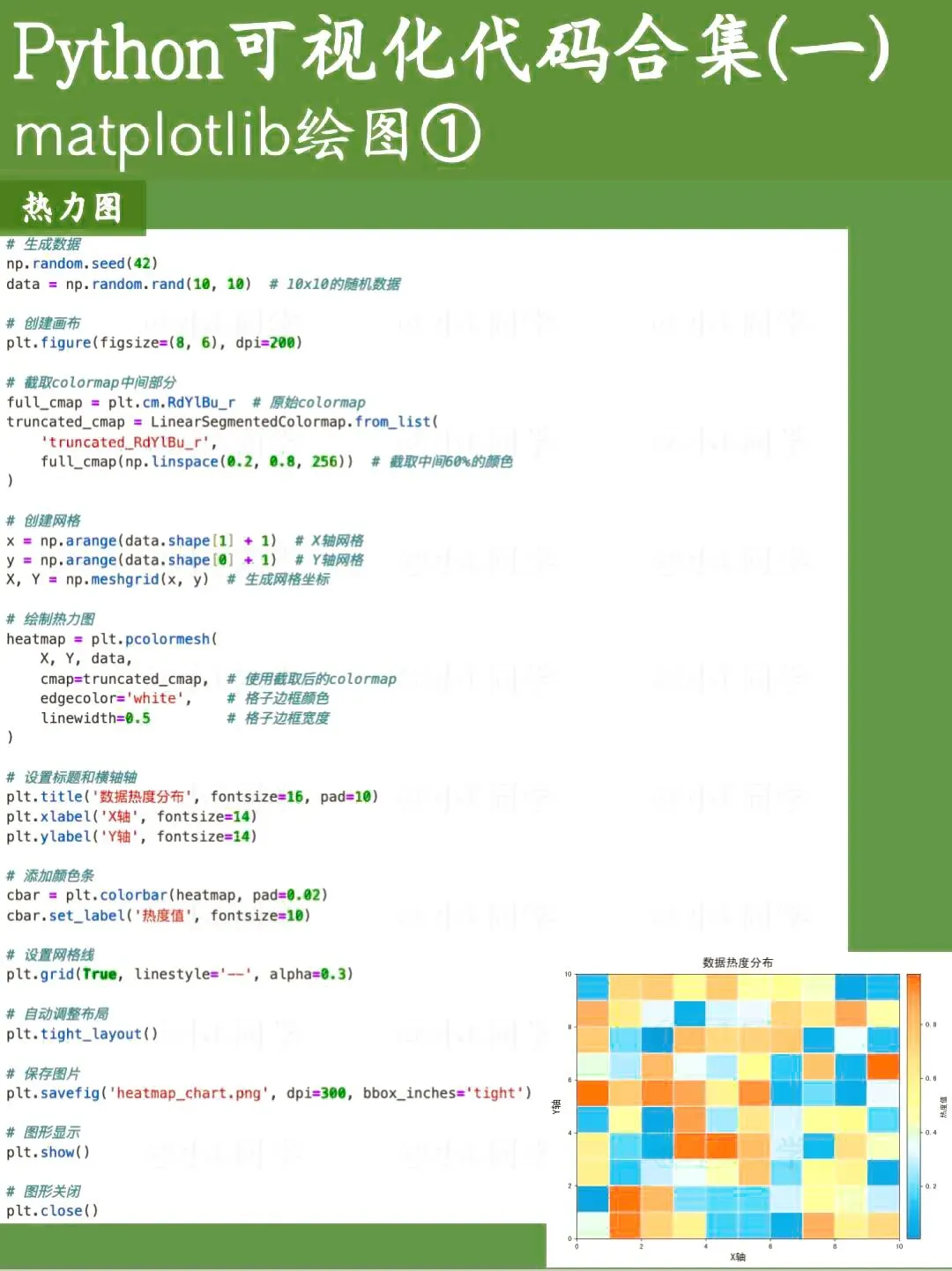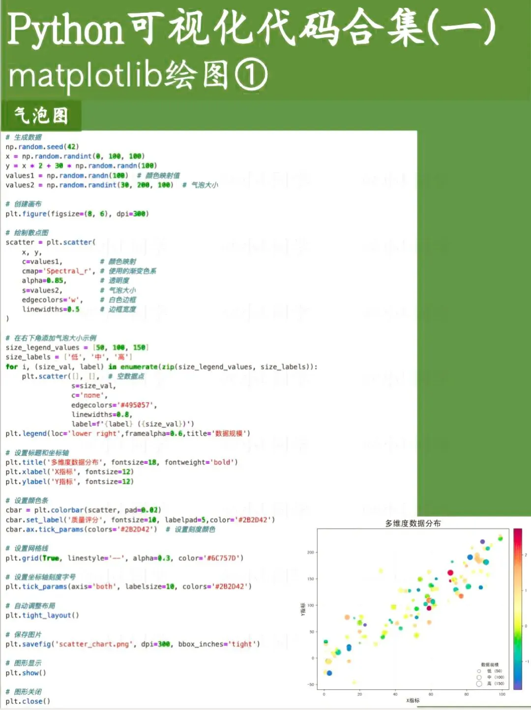 Matplotlib是Python的一款基础绘图库,可定制化程度非常高。这次分享的是基于Matplotlib绘制的基础图表代码。 Seaborn是一款基于Matplotlib的Python数据可视化工具,使用起来要比Matplotlib更简洁便捷,尤其适合日常工作里对数据进行快速分析与查看。文章涵盖了绝大多数seaborn绘图函数。