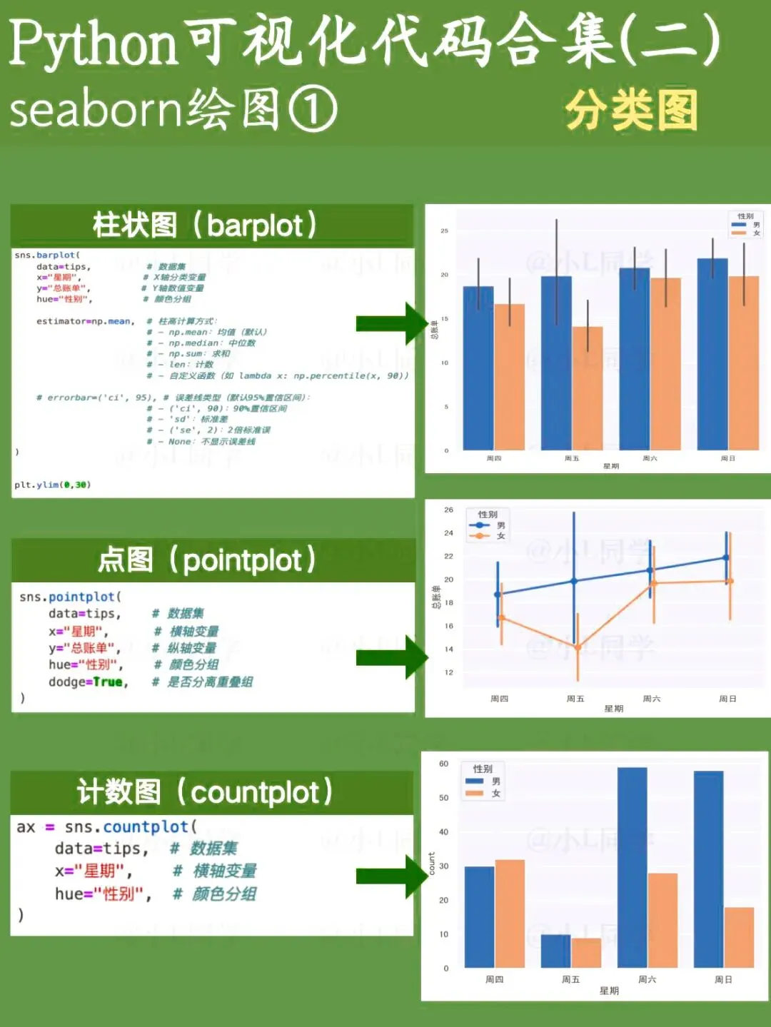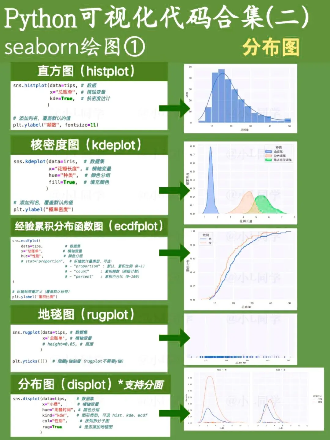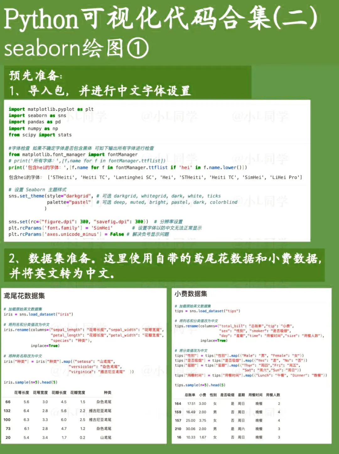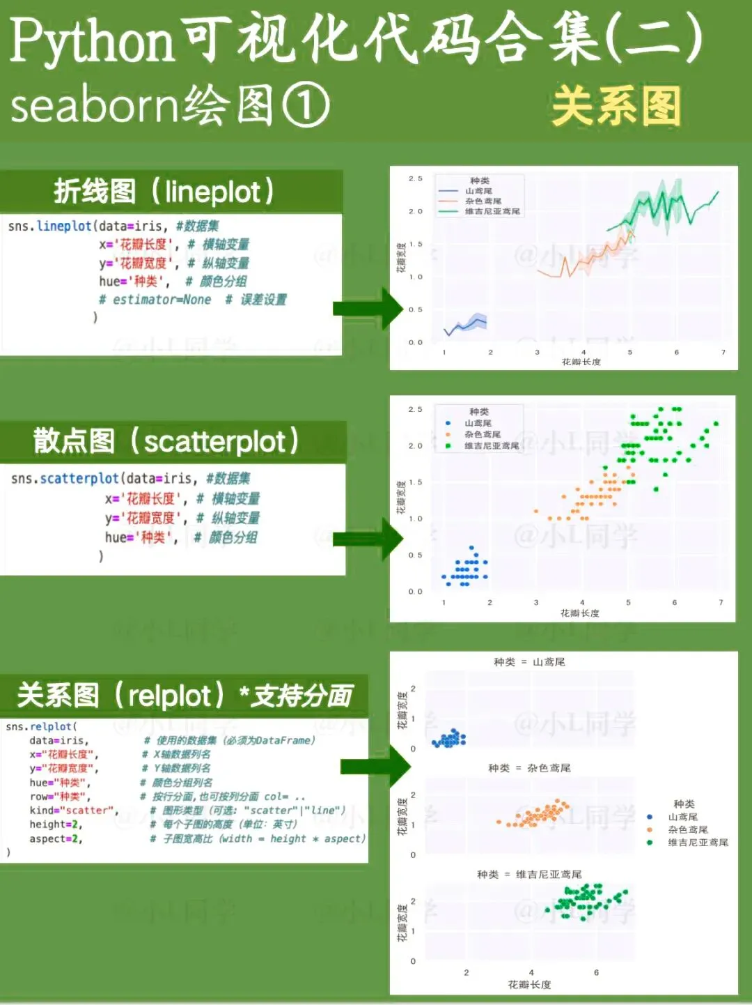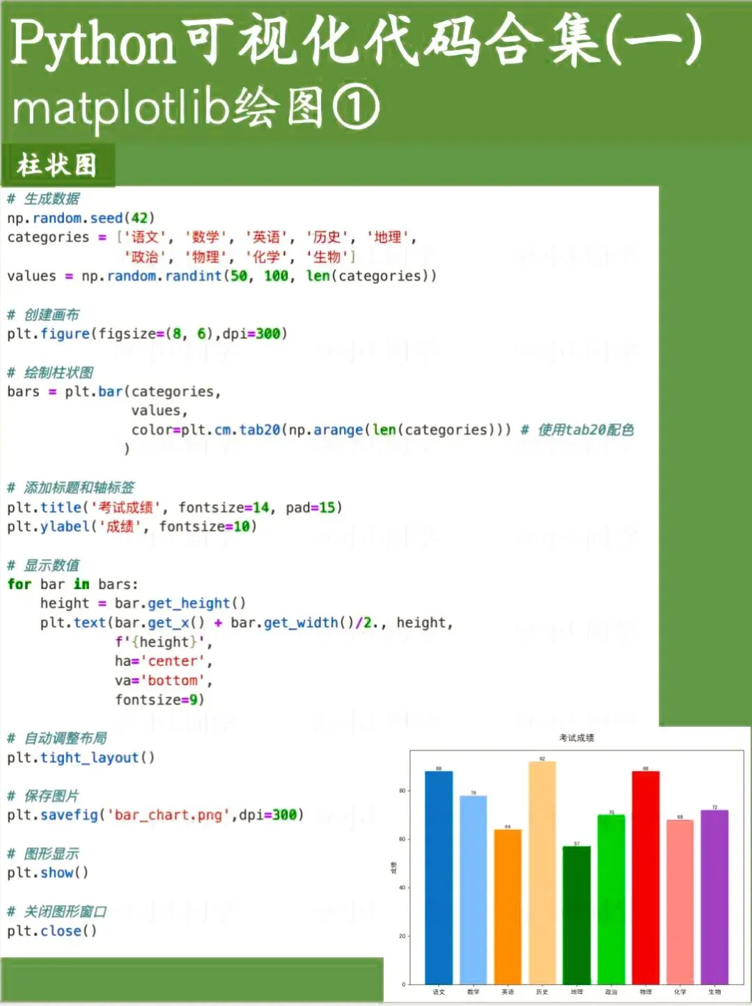 Matplotlib是Python的一款基础绘图库,可定制化程度非常高。这次分享的是基于Matplotlib绘制的基础图表代码。 Seaborn是一款基于Matplotlib的Python数据可视化工具,使用起来要比Matplotlib更简洁便捷,尤其适合日常工作里对数据进行快速分析与查看。文章涵盖了绝大多数seaborn绘图函数。