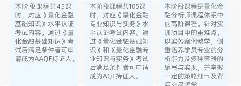 2、已参加并完成指定授权培训机构提供的量化金融分析师实训项目,并获得对应的学分。