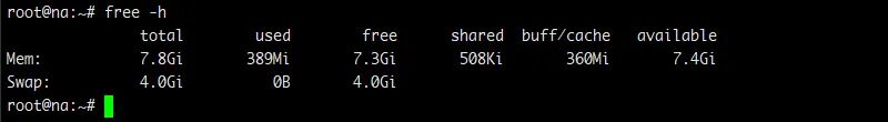 使用”free”命令就可以查看内存的使用情况,关注”available”列,这个值才是系统可以分配给新的应用程序的可用内存,而不是”free”列显示的值: