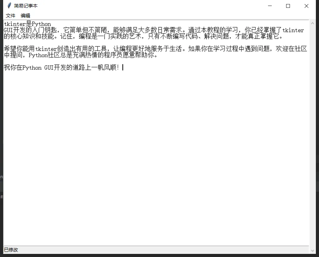 文档丰富:作为Python最古老的GUI库之一,tkinter有着海量的学习资源和社区支持。遇到问题,很容易在网上找到解决方案。