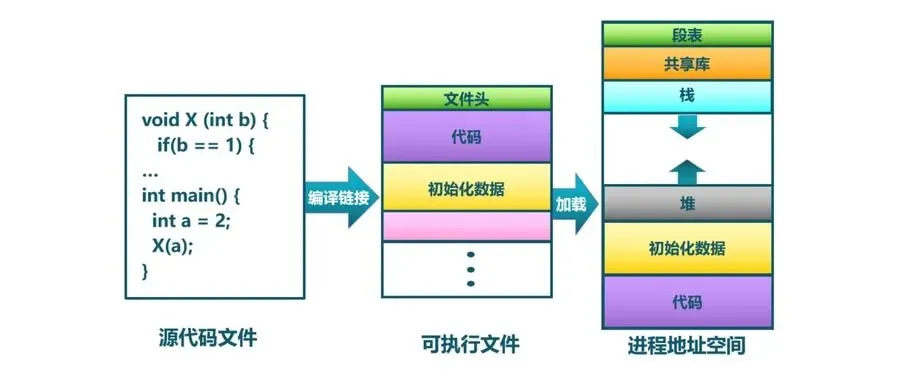 很多开发者容易有个疑问:我们写的 C/C++ 代码,最终是如何变成进程内存中那些“代码段、数据段”的?答案就藏在编译过程与ELF 文件格式中——编译是代码“变身”的过程,ELF 文件则是变身的“中间载体”,最终加载到内存后,就对应着我们后续要讲的各个内存区域。这一步吃透,后面理解用户空间内存分布会更轻松,避免只记“是什么”,不懂“从哪来”。