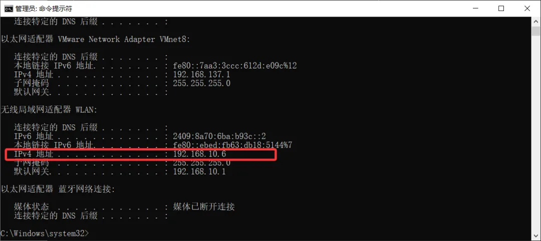 1 查看Windows端ip地址