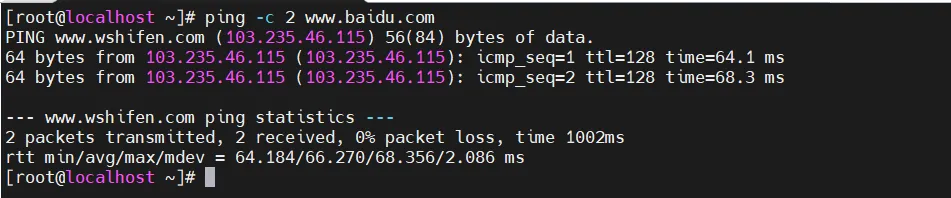 重启网卡[root@localhost ~]# ifdown ens33[root@localhost ~]# ifup ens33