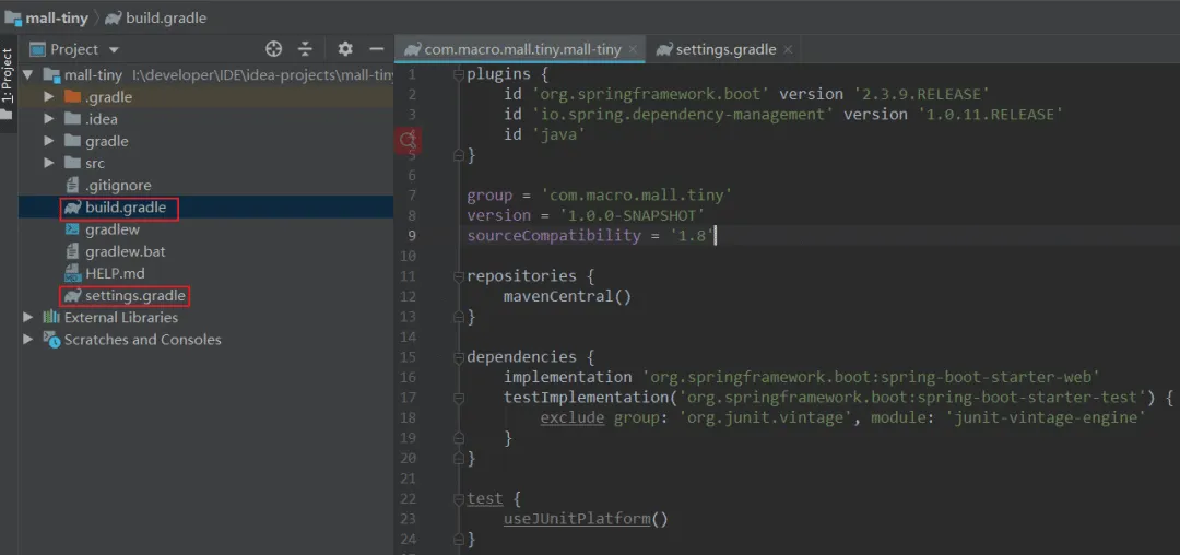 接下来将把我的脚手架项目mall-tiny从使用Maven改造成使用Gradle,来体验一把Gradle的使用。