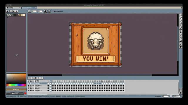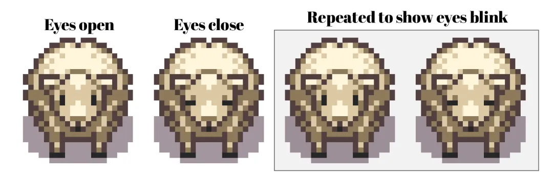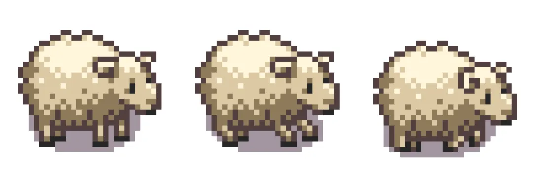 当所有的绵羊都画完之后,它在Aseprite中预览的效果就是这样的: