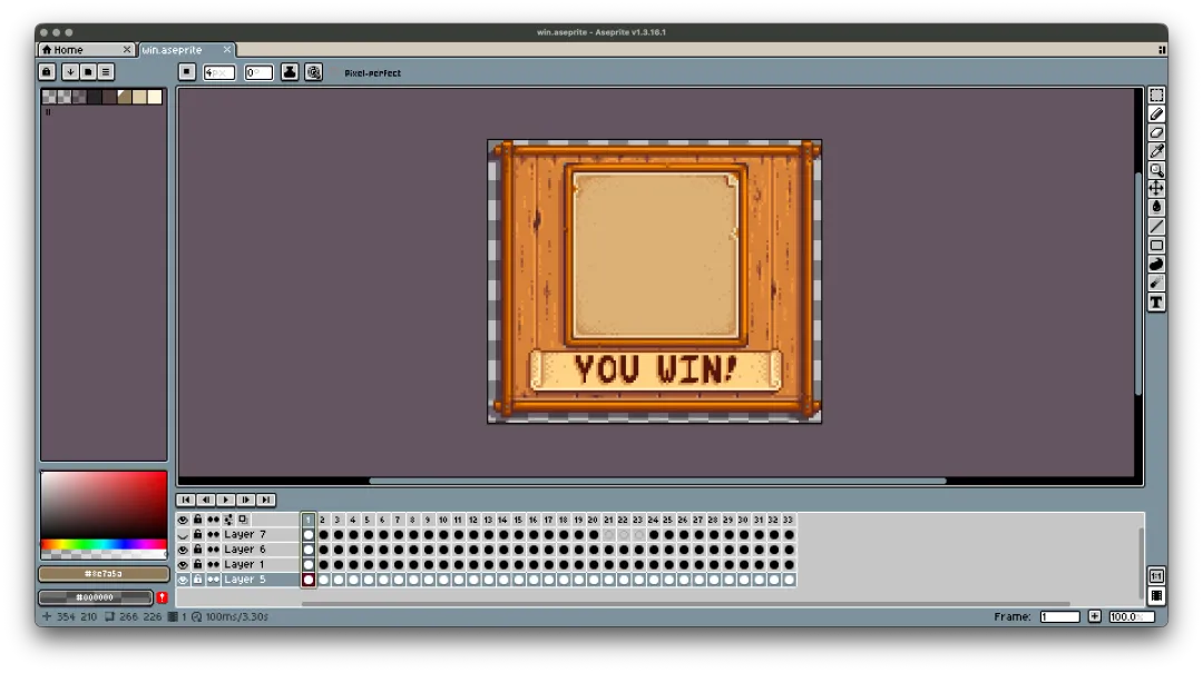 所以在Aseprite中,我先把不会动的内容全都画好。