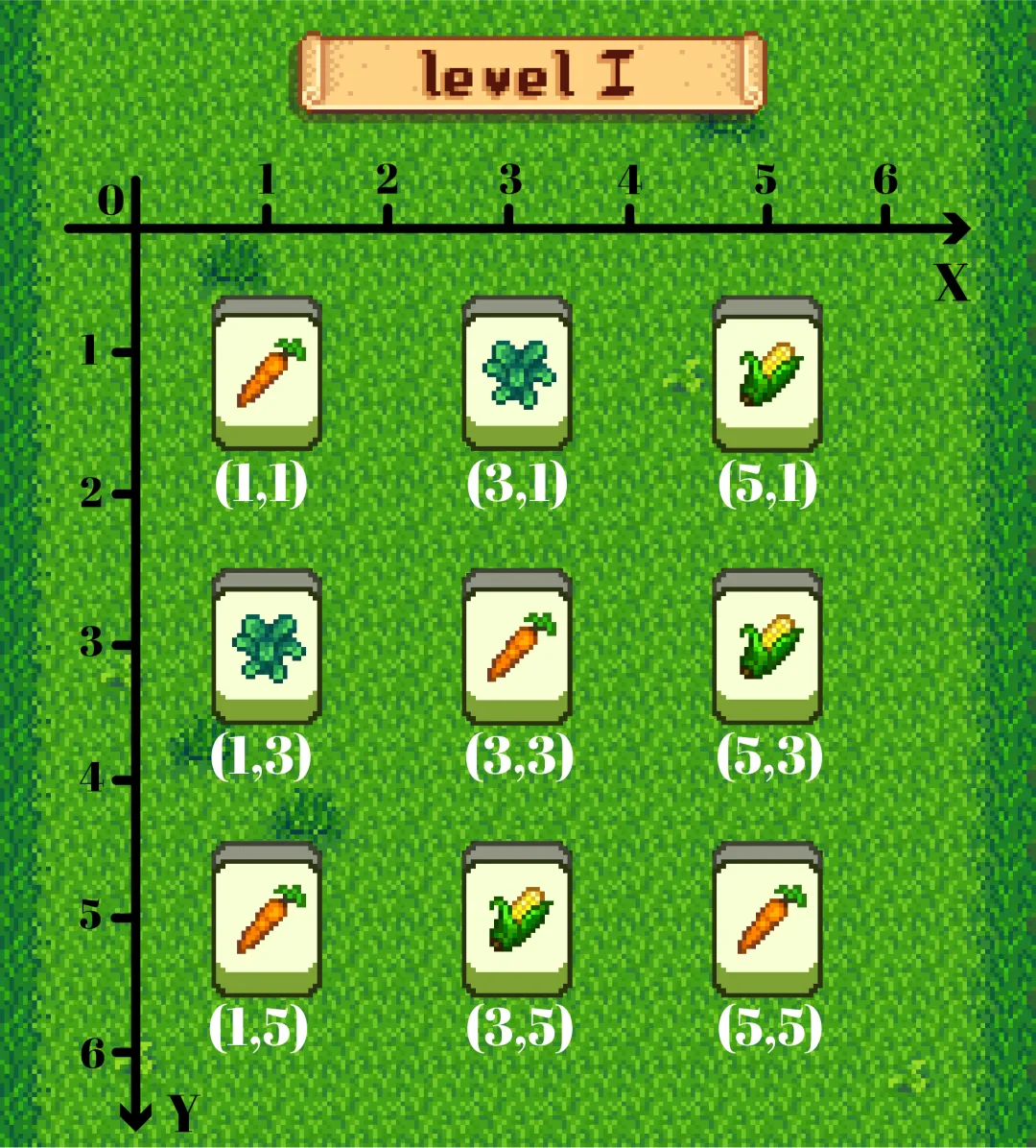 第一关非常简单,卡片的排列就是一个3x3的矩阵,横着3张,竖着3张。