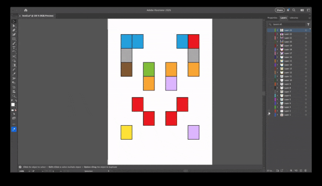 于是根据那个珍贵的视频,我将它倒放,观察它的卡片阵列是如何排列的,然后用 Adobe Illustrator 一层一层地把排列方式画下来。