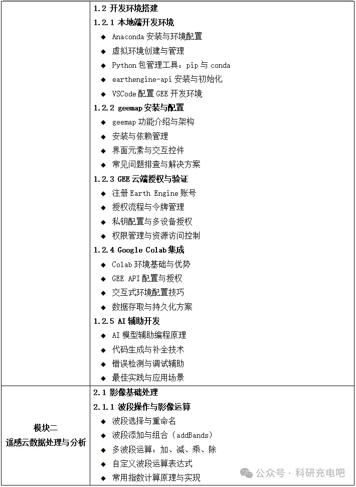 如今,Earth Engine已广泛应用于各类科研和业务场景,基于Python的GEE编程方法也日益成熟。本次培训特别增加了Satellite Embedding数据集的原理与应用模块,帮助学员掌握这一划时代的AI技术在遥感分析中的实践应用。本课程指在帮助科研工作者掌握Earth Engine的实际应用能力,以Python为基础,结合实例讲解平台搭建、影像数据分析、AI嵌入向量应用、经典应用案例、本地与云端数据管理,以及云端数据可视化等技能。为提高教学质量,本课程将融入ChatGPT 5、Claude 4.1、Gemini 2.5、DeepSeek R1等先进AI大模型辅助教学,为学员提供个性化建议和指导,深化课程内容掌握,并为未来自助学习提供高效的个性化体验。