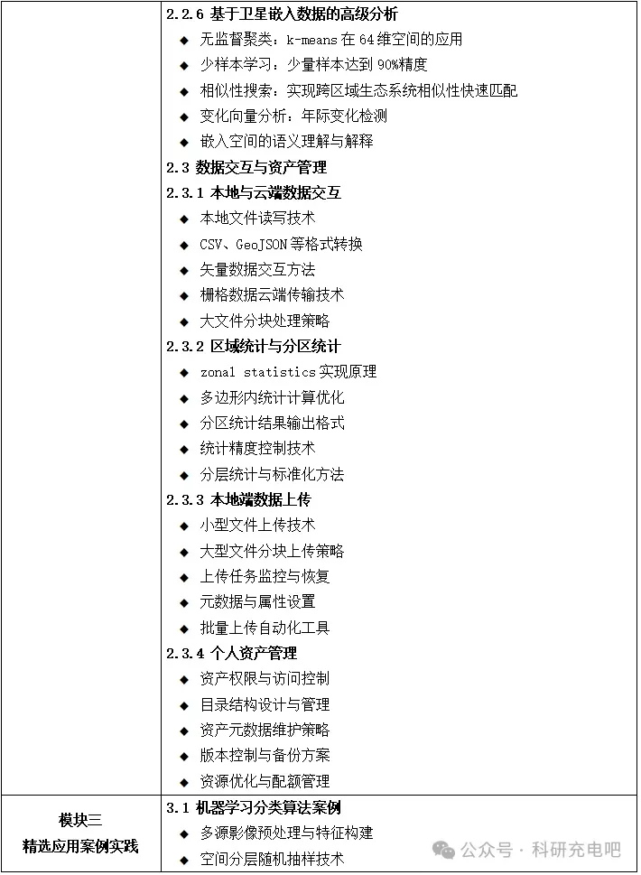 实战导向的学习方法:通过真实案例驱动学习,从数据获取、预处理、分析到可视化全流程实战演练,同时包含多个基于Satellite Embedding的创新应用案例