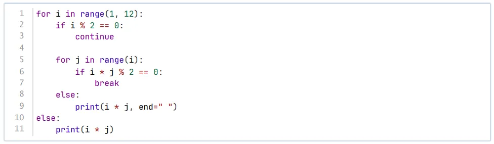 【解析】第6行先计算i*j再算%2,而j初始都为0,所以无论i为多少i*j%2都为0,都会break结束,由于是break结束的for循环第8行的else部分不会执行,不存在2个输出结果排除A、D,由于break结束时j=0,所以第10行else执行时i*0=0,只会输出一个0,因此正确选项是C。