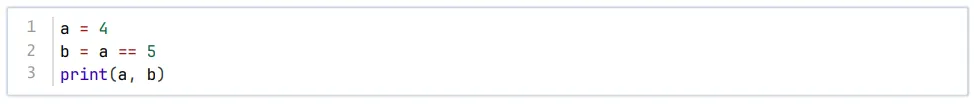 第1行a先赋值为4,第2行a == 5 的意思是判断 a和 5 是否相等。当前a 的值是4,所以比较结果是False。将False 赋值给变量b。输出 a和 b 的值:4 False。