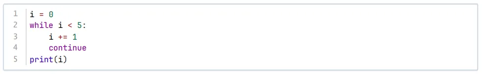 continue后没有任何语句,循环中i每次增加1,共循环5次,所以输出i为5,说法正确