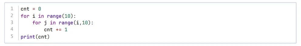第9 题 下列Python代码执行后将输出55 。( )