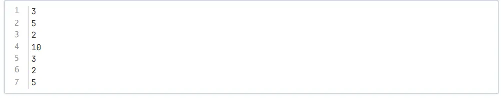 第一行包含一个正整数t,代表测试数据组数。