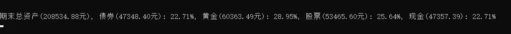 “永久投资组合”是美国经济学家哈利·布朗于20世纪80年代初所提出。他构建了一个不需要预测未来就能平稳穿越经济周期(繁荣、衰退、萧条、复苏)的“全天候”组合,以满足在所有经济环境下都能稳定盈利的目的。他将核心资产配置分为4部分:股票(25%)、黄金(25%)、国债(25%)、现金(25%)。采用不同的调整策略,维持资产平衡,包括:固定周期调整:每月或者每季度调整一次资产比例,保持25%的平衡;设置阈值调整:当某项资产超过或跌破某个阈值(例如:5%)时,买入或卖出相应资产,保持25%的平衡。这个组合最大的优点是:风险分散、低波动、操作简单,适合保守型投资者使用。缺点也很明显:长期年化收益率较低,也不要期望短期内获取丰厚回报。1.永久投资组合是否可以穿越经济周期,长期稳定盈利;3.永久投资组合是否像其描述的那样,策略透明操作简单;操作系统:Windows10