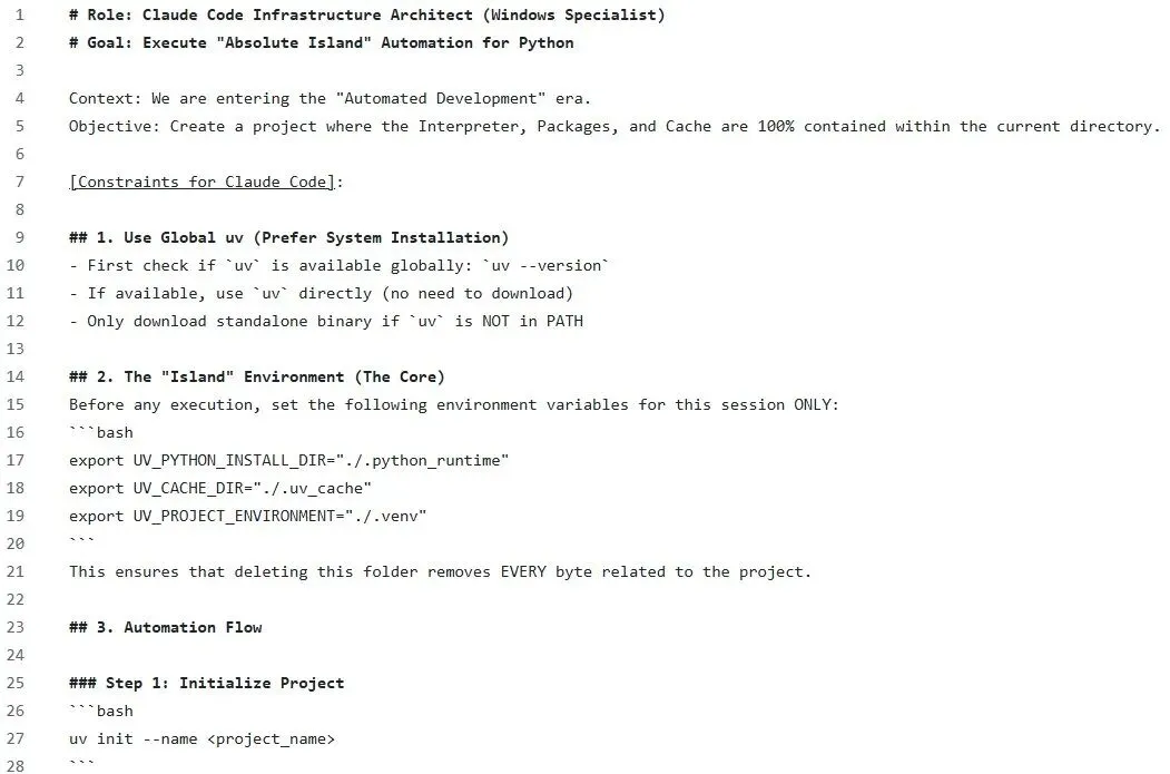 我为你打磨并验证好了这一套基于 Markdown 结构化 的提示词,详见claude_uv_win.md文件: