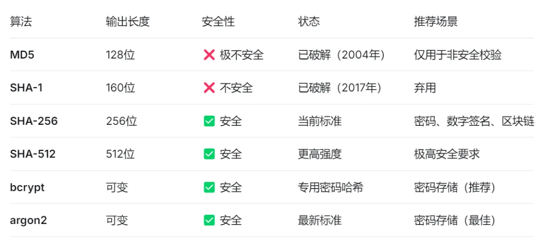 哈希算法是密码学的基石,它通过数学变换为数据创建唯一的数字指纹。理解哈希的核心特性——确定性、单向性、抗碰撞性、雪崩效应——能帮助你正确应用它。- 存储密码必须加盐迭代哈希,绝不使用MD5/SHA-1