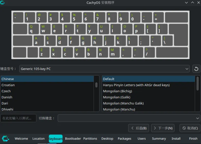 键盘设置默认即可,自动识别的键盘布局,基本不会出现错误。