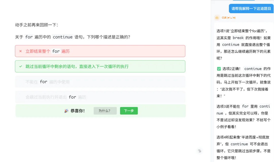 课程通过AI 互动体验、漫画故事、贴近生活的项目实践,把抽象难懂的编程知识变得生动有趣、简单易懂。孩子不是被动听课,而是在解决问题、完成趣味任务的过程中掌握知识点,既能保持浓厚学习兴趣,又能掌握独立思考与解决问题的能力。AI全程伴学