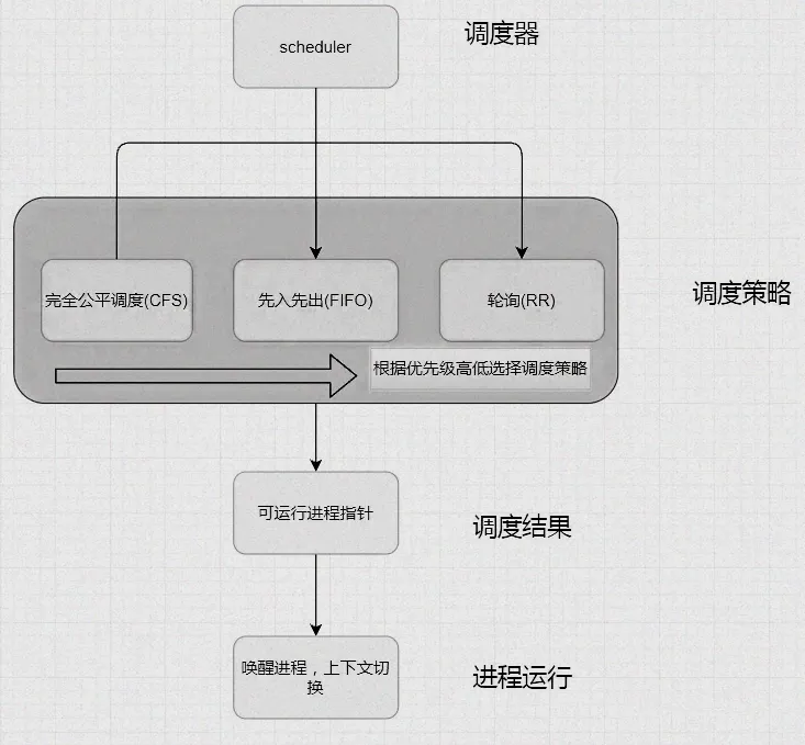 这种模块化设计的好处是:如果要新增调度策略,不用修改整个内核,只需新增一个调度类,实现对应的方法即可——比如适配新的异构计算场景,新增调度类就能快速支持。