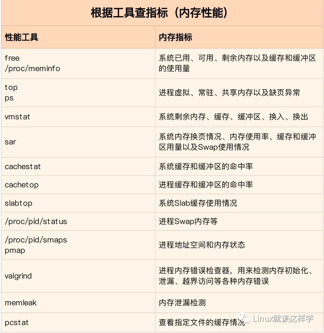 通常先运行几个覆盖面比较大的性能工具,如 free,top,vmstat,pidstat 等