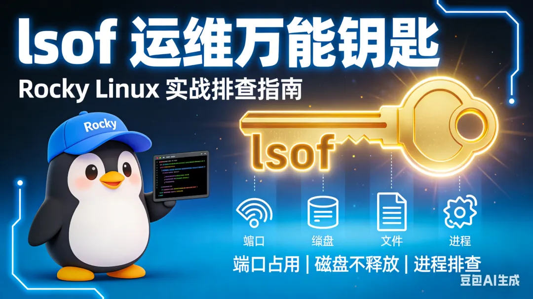 本文将以Rocky Linux(与CentOS、RHEL完全兼容)为环境,从入门到精通,用最浅显的语言、最实用的示例,手把手教你掌握lsof,让它成为你运维工具箱中的“得力干将”。