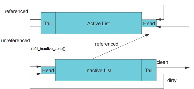 Least Recently Used (LRU)是计算机体系架构的一个永恒经典话题,只要cache 比 memory 贵和快,memory 比 disk 贵和快,人们都需要在房价和房子大之间找到一个平衡。Linux 内核,以 LRU 算法管理内存和磁盘 I/O 之间的替换。它把 LRU 分为 File 和 anon 页,尔后 File 和 anon 页各自有自己的 active 和 inactive list,活跃的页面从 inactive 升级到 active list,冷却的页面从 active 页面降级到 inactive list,直至足够冷却,排在了 list 的尾部,被内核回收。