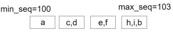假设我们观察的起点,min_seq=100,max_seq=103,分别装有a,b,c,d,e,f,h,i 这 8 个 page: