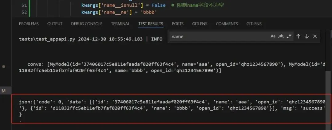 注:这个测试发现,没有修改成功,name没有改成【你好】,排查下原因。修改代码如下: