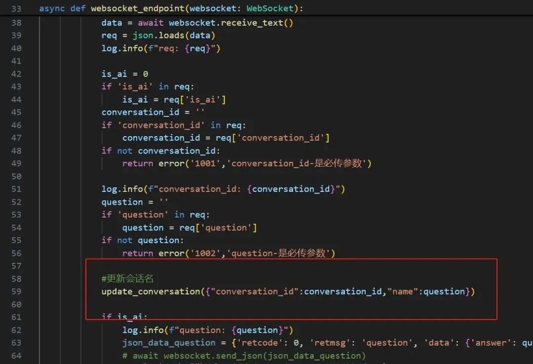 描述:当获取聊天列表时,会话名需要最后一条用户的问题,所以,每次用户提问都要更新会话名。