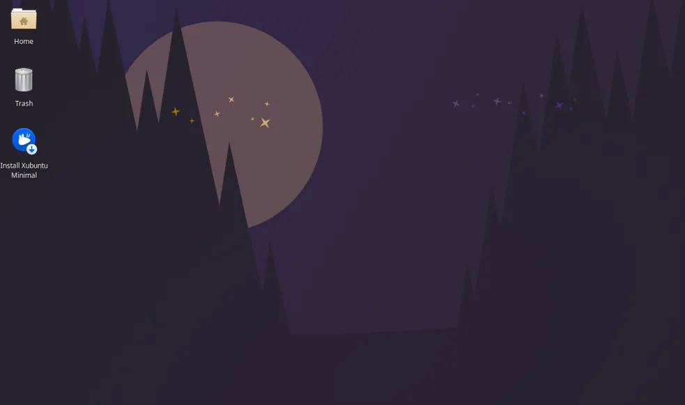 很快就加载进入了桌面,这里的预览桌面很简洁,视觉效果和之前其他的Xfce桌面的Linux发行版一样,操作也很快。点击Install Xubuntu开始安装。