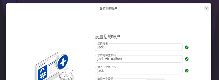 设置好登录需要的用户名和密码。这是Ubuntu Linux推行已久的做法,不建议直接使用root用户,当需要更高权限的时候使用sudo,进行root权限的操作。