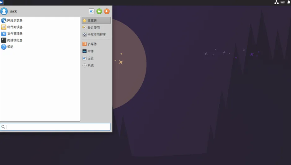 登录完成,可以看到Xfce的默认应用软件真的不多,但是操作十分流畅,桌面很简洁。