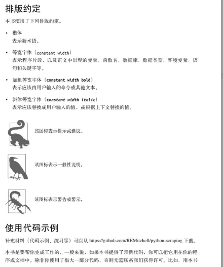 本书不仅介绍了网络数据采集,也为采集新式网络中的各种数据类型提供了全面的指导。虽然本书用的是 Python 编程语言,里面涉及 Python 的许多基础知识,但这并不是一本Python 入门图书。