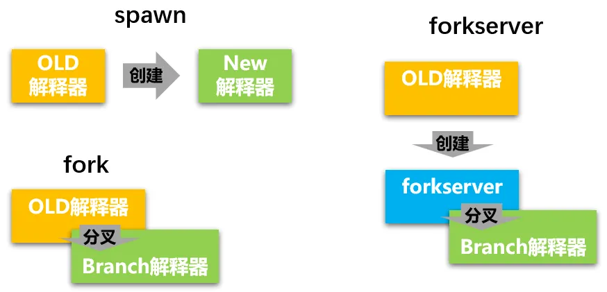根据平台不同,multiprocessing包支持三种启动进程的方法,分别为spawn、fork、forkserver。