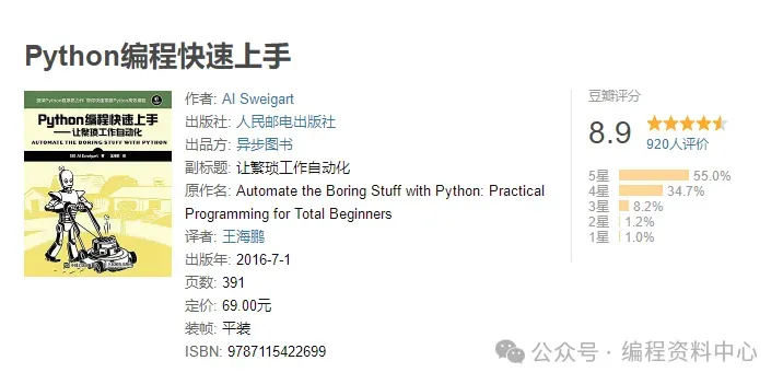 今天给大家推荐三本书,即“Python编程三剑客”,《Python编程从入门到实践》、《Python编程快速上手——让繁琐工作自动化》、《Python极客项目编程》,可以说是为Python爱好者撰写的一套非常简单易懂、且有具有扩展性的经典教程。《Python编程 从入门到实践》可以帮助零基础读者快速入门Python编程,并且达到初级开发者的水平;《Python编程快速上手 让繁琐工作自动化》则从工作实际的角度出发,提炼了众多Python应用的实战案例,帮助读者增强实战技能;《Python极客项目编程》则将Python的应用更进一步扩展,让读者从富有想象力的编程项目中,增强对Python编程的认知。