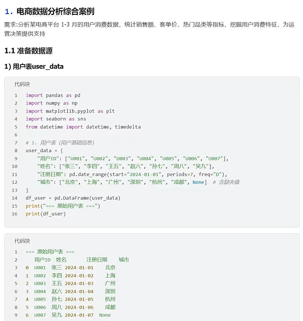Python综合案例~电商数据分析 需求:分析某电商平台 1-3 月的用户消费数据, 统计销售额、客单价、热门品类等指标,挖掘用户消费特征,为运营决策提供支持。