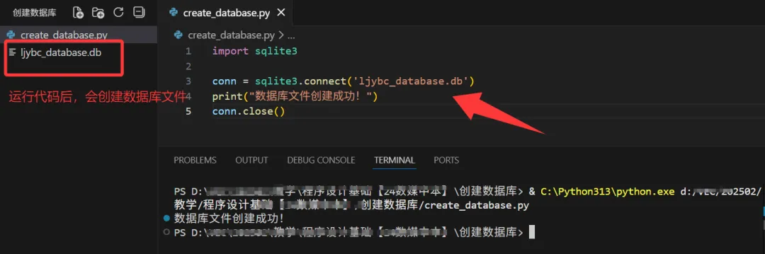 import sqlite3# 连接数据库文件。如果'ljybc_database.db'文件不存在,SQLite自动创建。conn = sqlite3.connect("ljybc_database.db")print("数据库创建/连接成功")conn.close() # 操作完毕后务必关闭连接