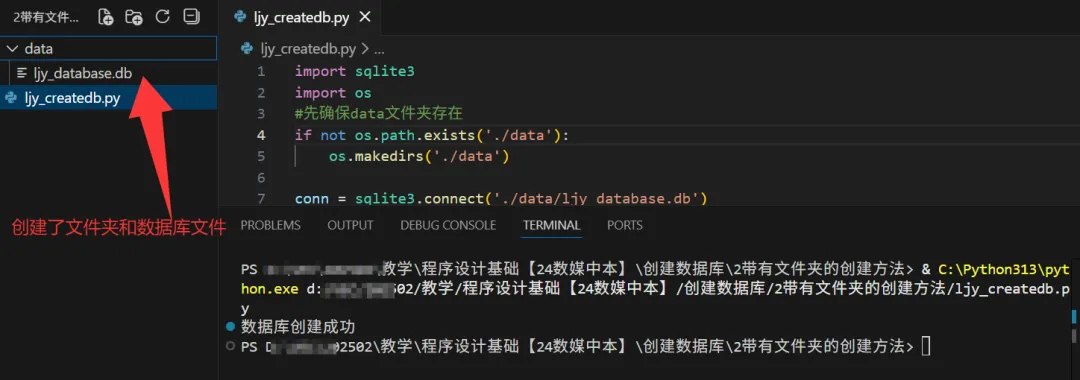import sqlite3import os#先确保data文件夹存在if not os.path.exists('./data'): os.makedirs('./data')conn = sqlite3.connect('./data/ljy_database.db')print("数据库创建成功")conn.close()