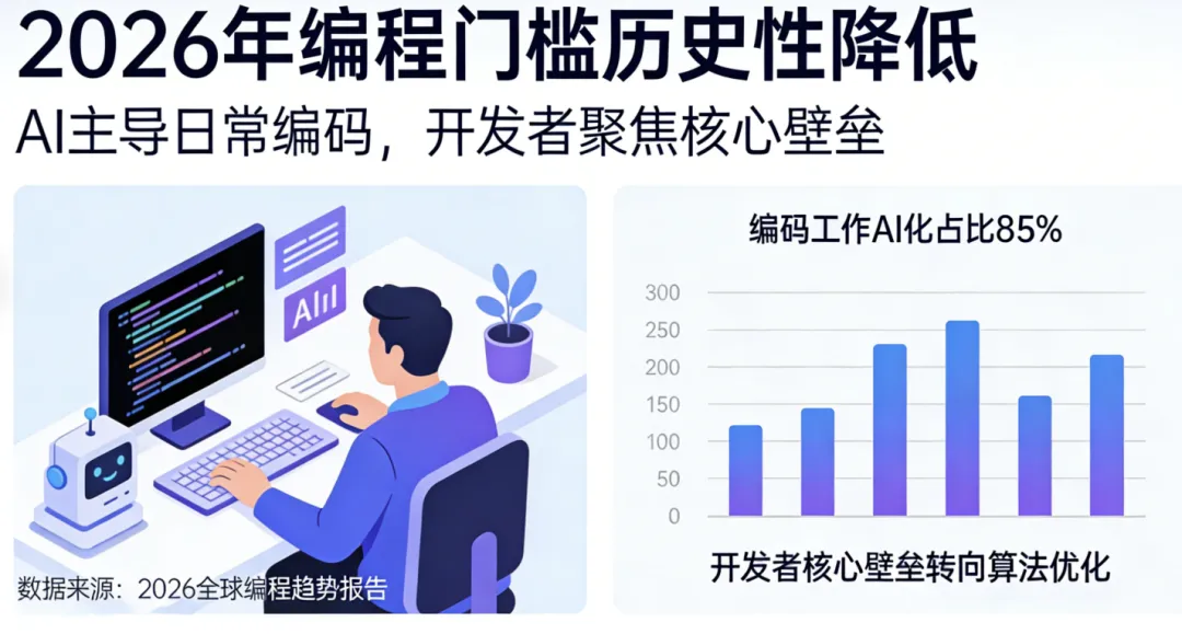 春节假期的结束,象征着一个全新工作周期的开始。在这个由 AI 大模型竞争开启的 2026 年,编程的门槛在降低,但开发者的价值却在升高。我们面临的挑战是真实的,但机遇更是前所未有的广阔。只要我们勇于进化,从单纯的编码者成长为驾驭 AI 的架构师、场景落地的创新者、智能系统的设计师,我们就能在这场智变浪潮中乘风破浪。