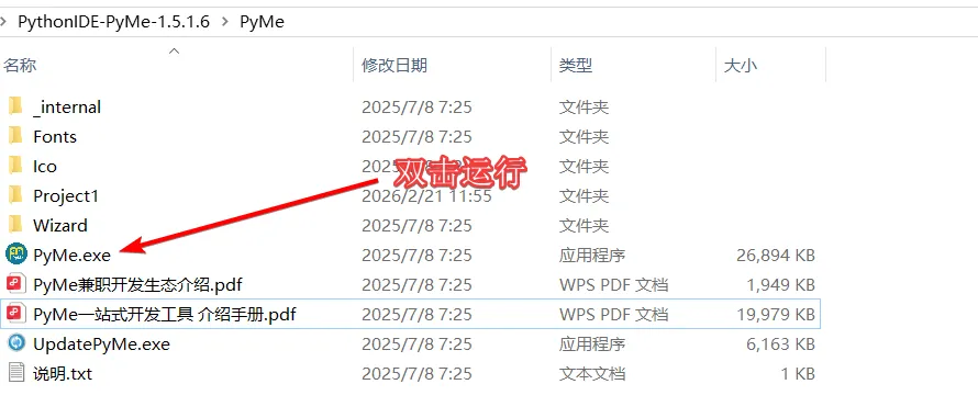 解压后,双击PyMe.exe运行即可。
