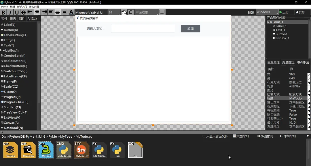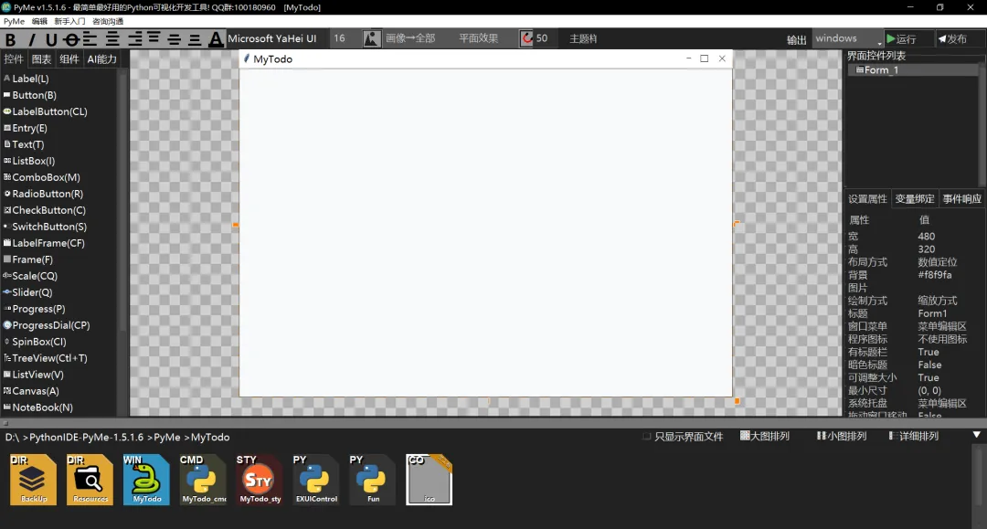 1.PyMe最大的特点在于其拖拽式界面设计器。只需将各种控件拖放到设计区域,即可快速构建专业的用户界面。