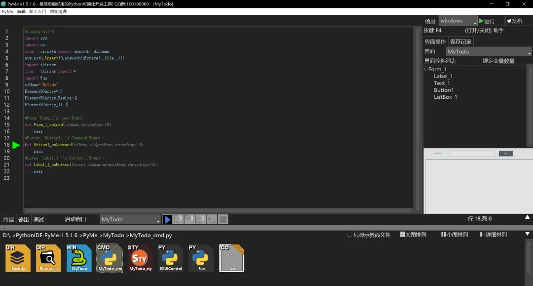 - 双击 “添加”按钮。PyMe会自动跳转到代码编辑界面。