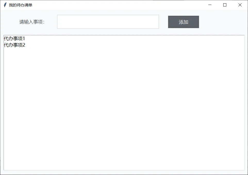 pass 替换成以下代码:defButton1_onCommand(uiName,widgetName,threadings=0):# 1. 获取输入框的内容 text = Fun.GetText(界面名称=uiName,控件名称="Text_1") text = text.strip()if text:# 2. 如果输入不为空,添加到列表框 listBox = Fun.GetElement(界面名称=uiName,控件名称="ListBox_1").insert(tkinter.END, text)# 3. 清空输入框 Fun.SetText(界面名称=uiName,控件名称="Text_1",字符串文本="")