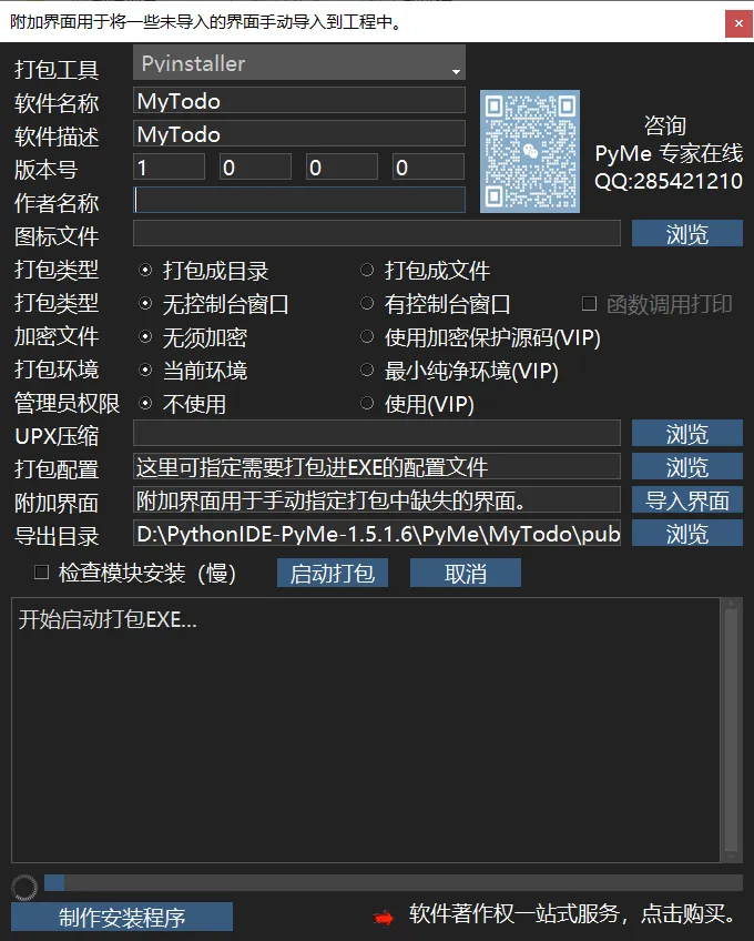 打包成EXE