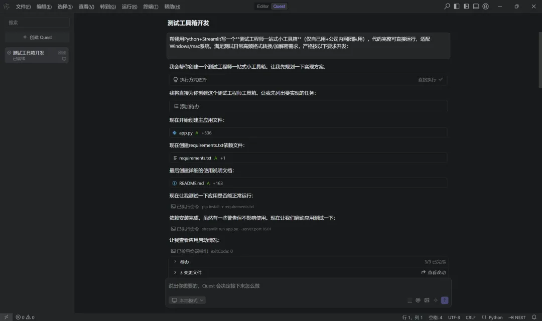 当然,大家也可以发挥想像力,将自己需要的工具列出来,让AI直接生成,不断完善工具,以提升测试效率。