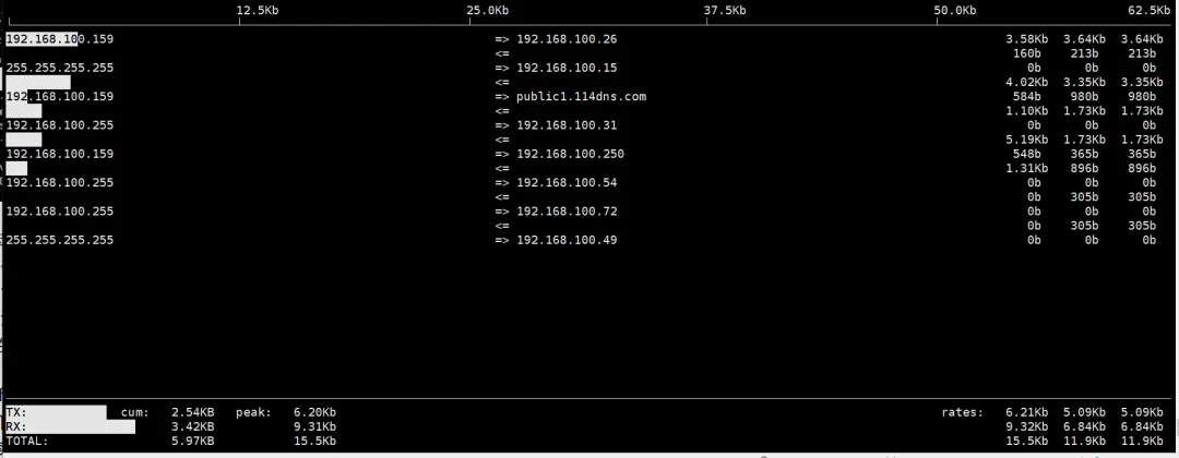 还有iftop命令,它可以实时监控网络接口的流量情况,包括每个连接的上传和下载速度。安装好iftop后,在终端输入sudo iftop,就会显示当前网络的实时流量信息,通过这些信息可以了解网络的整体负载和各个连接的速度情况。