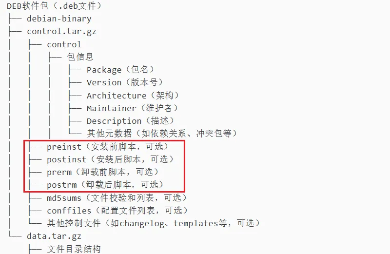 以 deb 软件包为例, 这些钩子脚本是没有任何限制的,可以编写任意命令